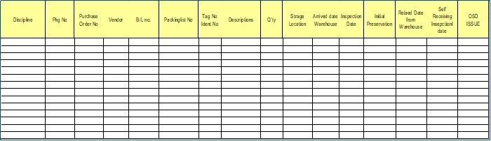 • Listing of material as per discipline/Material type/storage location/Arrival date/so as listing captured below.