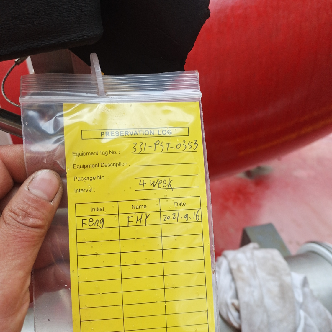 Preservation is to provide protection to the equipment, electrical, instrumentation, piping materials in various of phases, beginning from receiving into warehouse / storage, installation unto modules / topside until integration and prior to commissioning. Preservation also includes maintenance.